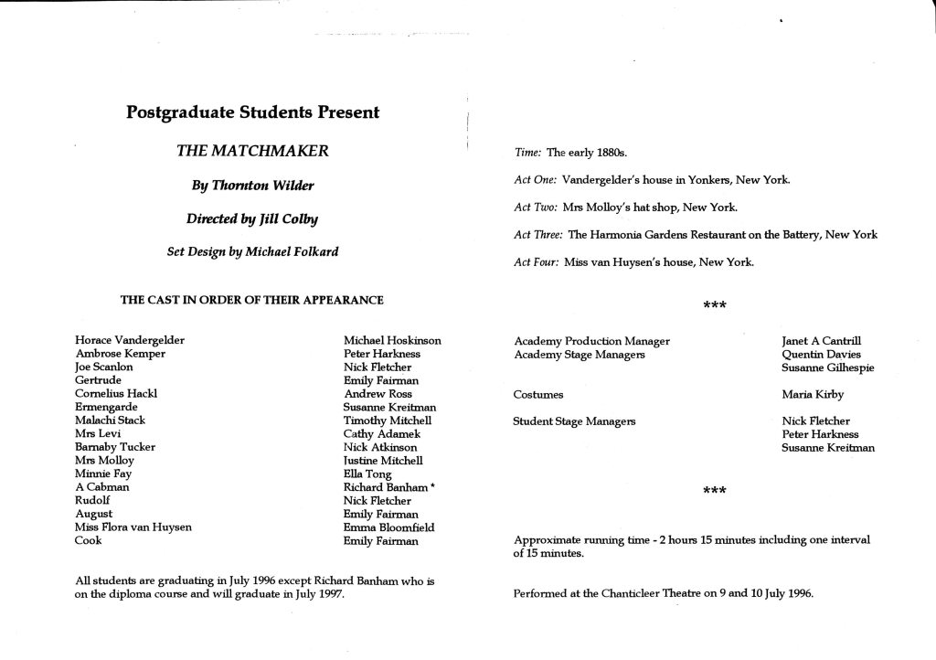 Cast: Michael Hoskinson, Peter Harkness, Nick Fletcher, Emily Fairman, Andrew Ross, Susanne Kreitman, Timothy Mitchell, Ella Tong, Richard Banham, Emma Bloomfield